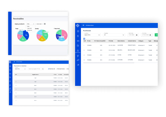 Modules for purchase, inventory, payables and receivables